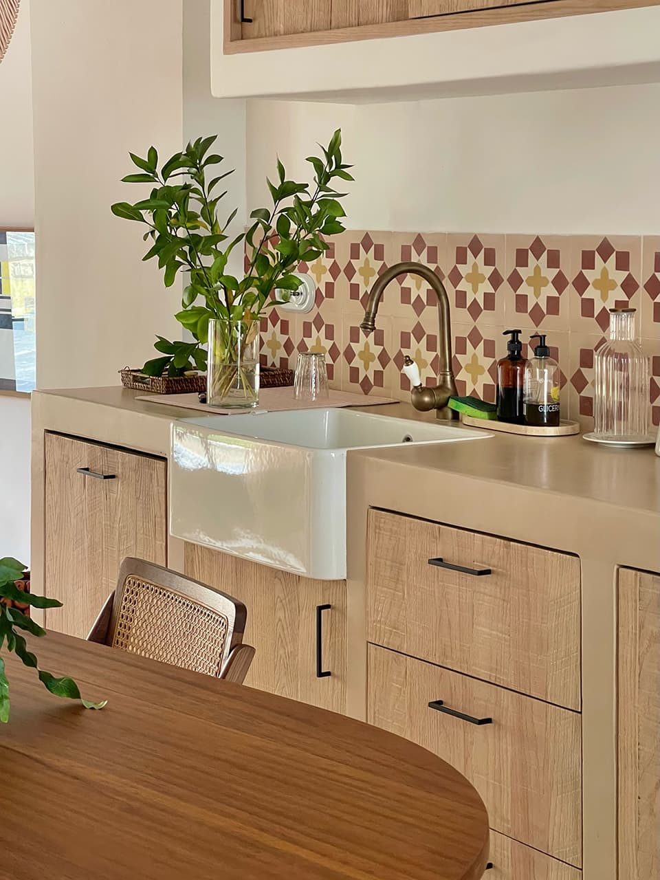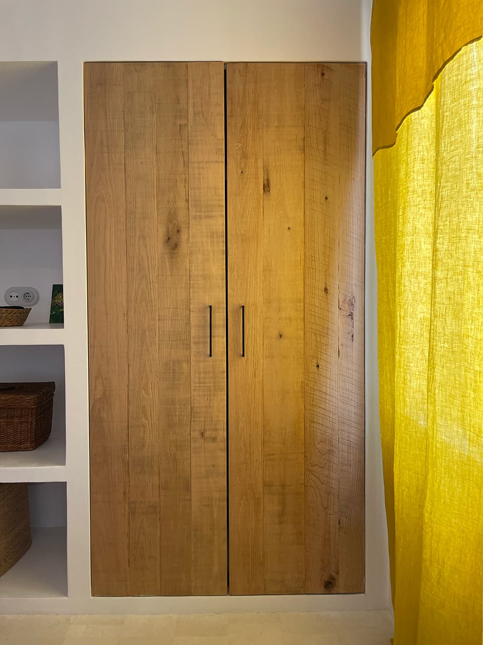 Realizamos la carpintería exterior en iroko y pérgolas en iroko y eucalipto. La cocina se ejecutó en roble rojo. Completamos el proyecto con muebles a medida en roble e iroko, además de puertas interiores, armarios y cabeceros.